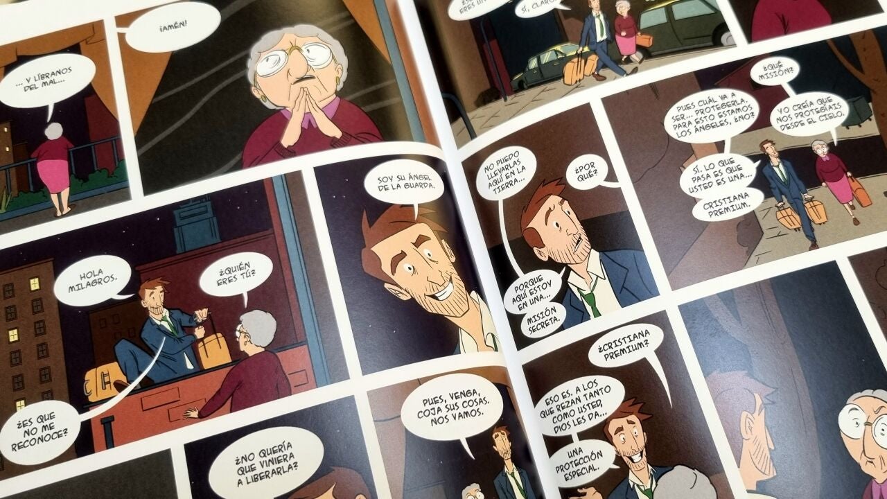 Por qué lo recomendamos: El periodista Pablo Conde ha firmado un guion tremendamente original y divertido en este 'Miguel Ángel de la Guarda'. Una historia llena de ironía y mala leche, inteligentemente ilustrada por Fran I. Periáñez. Pero es que además, por cada ejemplar de este cómic, quien lo compre estará donando un par de euros al proyecto 'Teléfono Dorado' de Mensajeros de la Paz, un programa de la ONG creada por el Padre Ángel destinado a ofrecer compañía a aquellos mayores que se encuentran en situación de soledad. Así que comprar este libro es, de alguna manera, convertirse en ángeles de la guarda.