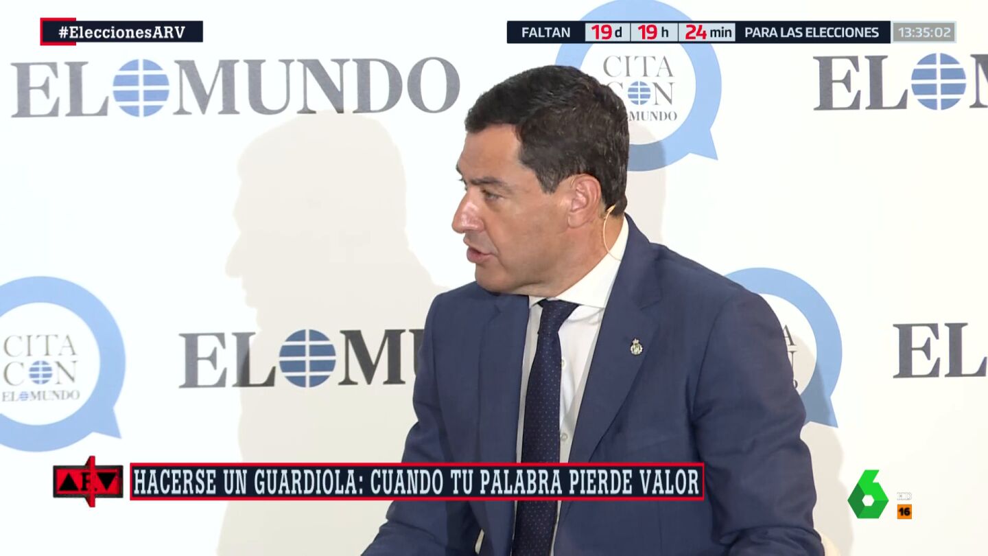 "Los políticos nos tragamos a veces nuestras palabras", ha esgrimido el presidente andaluz, que no obstante ha reivindicado que "al final Vox tiene un solo consejero" en Extremadura y ha defendido que Guardiola "va a ser una buena presidenta".