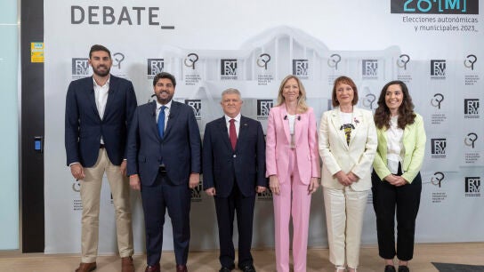 Todos ellos se enfrentaron durante la campaña electoral en un debate que tuvo que ser suspendido a mitad de la emisión, al negarse la cabeza de lista de Podemos, María Marín, a abandonar el plató para compartir tiempo televisivo, como había establecido la Junta Electoral, con su homóloga de Más Región-Equo, Helena Vidal.