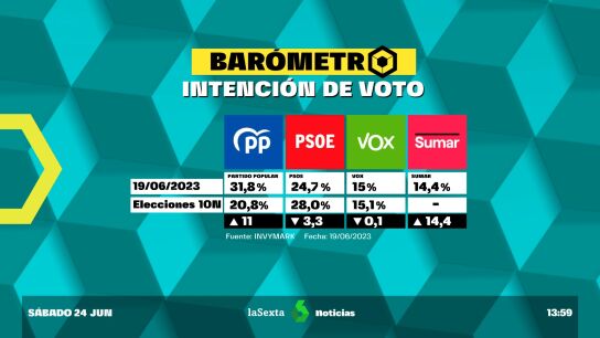 Barómetro laSexta | El PP reduce su ventaja tras sus primeros pactos con Vox y ganaría el 23J con el 31,8% del voto