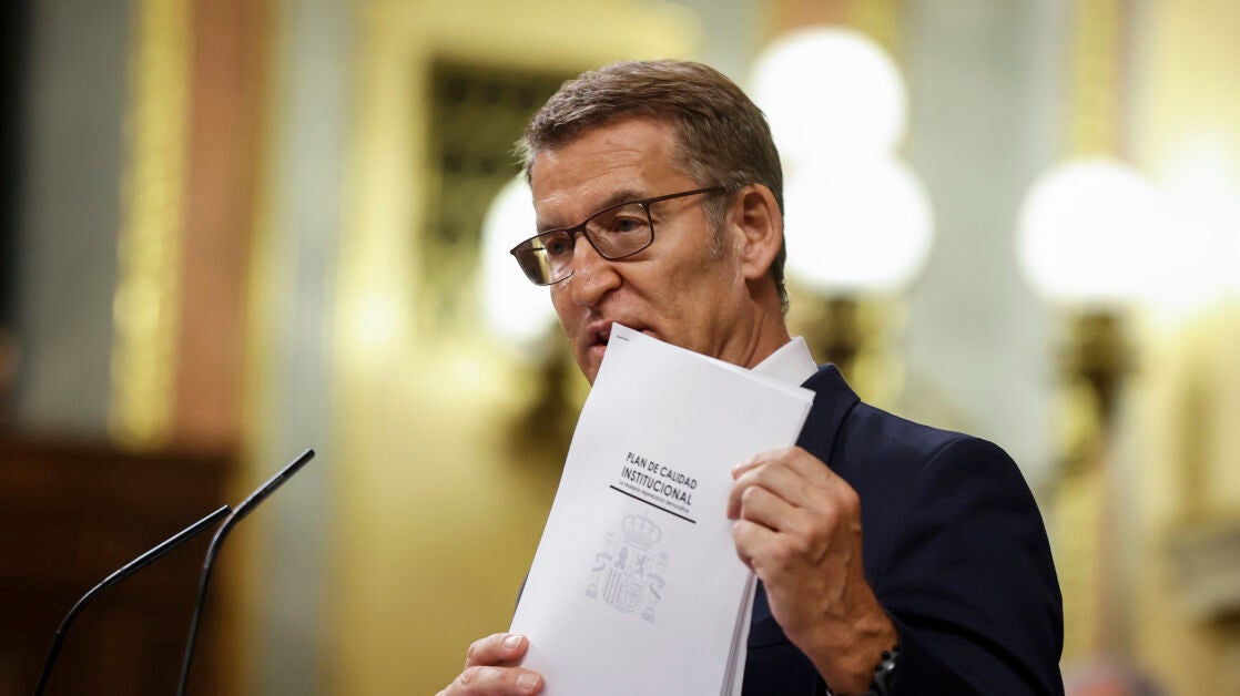 "Esta misma respuesta es la que le falta por verbalizar a usted", ha destacado Feijóo, en referencia a la amnistía que estaría negociando el Gobierno con los independentistas catalanes a cambio de su apoyo en la investidura. "Es un ataque directo a los valores democráticos, privar de todo efecto todas las decisiones judiciales, reducir a meras soflamas la aprobación del Artículo 155".