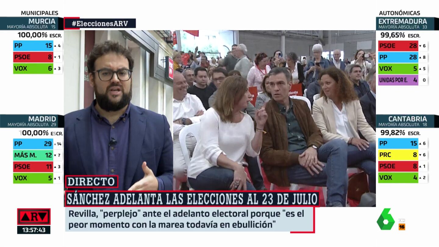 Pedro Sánchez ha decidido adelantar las elecciones generales al 23 de juliotras ver cómo el PP arrasaba en laselecciones municipales y autonómicas del 28M. Una decisión que José Enrique Monrosi ha explicado que ha producido un intenso debate en el PSOE.