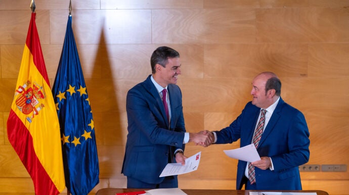Sánchez y Ortuzar firman el acuerdo de PSOE y PNV para garantizar la "estabilidad de la legislatura"