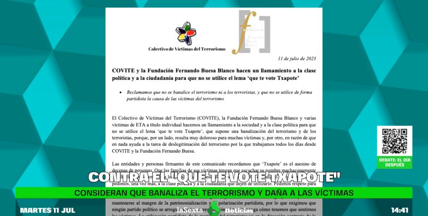 El texto subraya que Francisco Javier García Gaztelu, 'Txapote', es el asesino de decenas de personas. "Que las familias de sus víctimas tengan que escuchar su nombre machaconamente en un lema que menoscaba lo que supuso el asesinato de sus familiares es indigno y cruel, por lo que pedimos, una vez más, a la clase política y a la ciudadanía que dejen de utilizarlo", insiste.