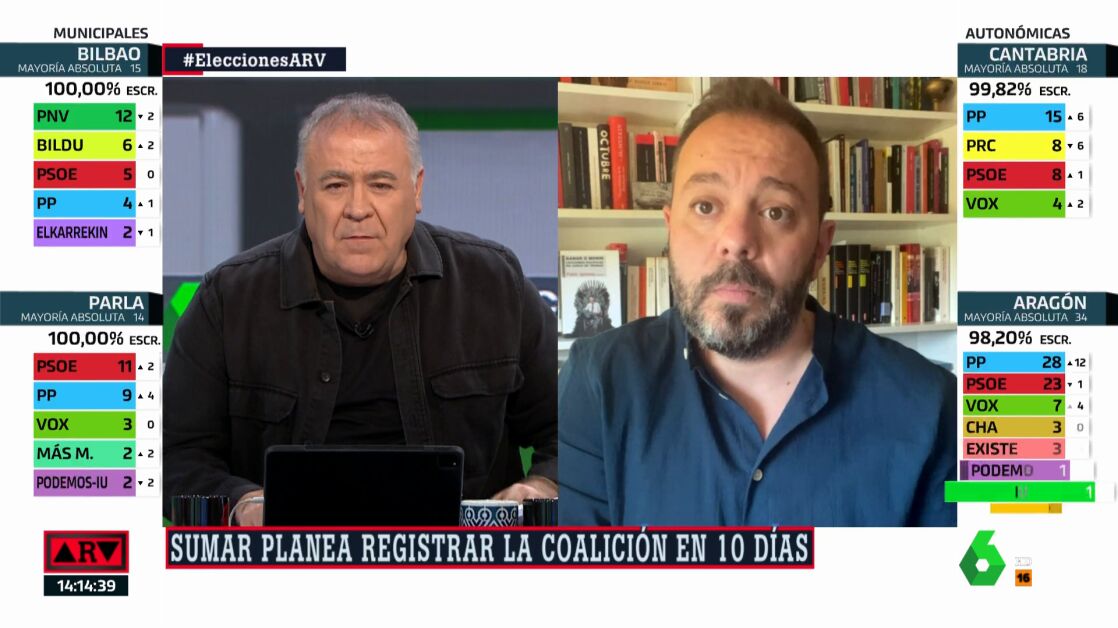 Antonio Maestre ha analizado en Al Rojo Vivo los resultados de laselecciones municipales y autonómicas del 28M.El periodista ha destacado que uno de los factores que ha provocado que el PP arrase en estas elecciones ha sido que los socios del PSOE "no han sido lo suficientemente fuertes como para consolidar el poder que tenían".