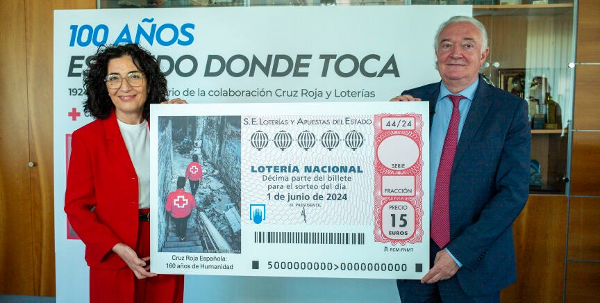 Lotería Nacional celebra, cada año, varios sorteos extraordinarios, y entre ellos está el de la Lotería Nacional de Cruz Roja, que este año cumple un siglo. Convocado de manera ininterrumpida desde 1924, este sorteo se hace centenario bajo el lema '100 años de no soledad, 100 años estando donde toca', con una edición cuya recaudación se invierte en proyectos de ayuda a los mayores, a personas discapacitadas, mujeres víctimas de violencia de género y ciudadanos en situación de extrema vulnerabilidad.