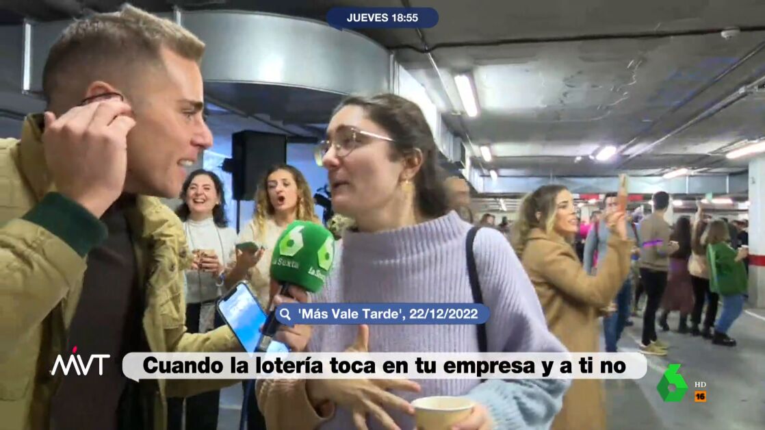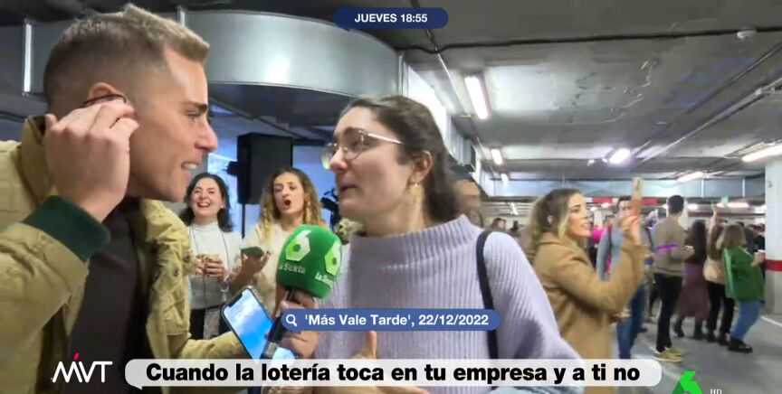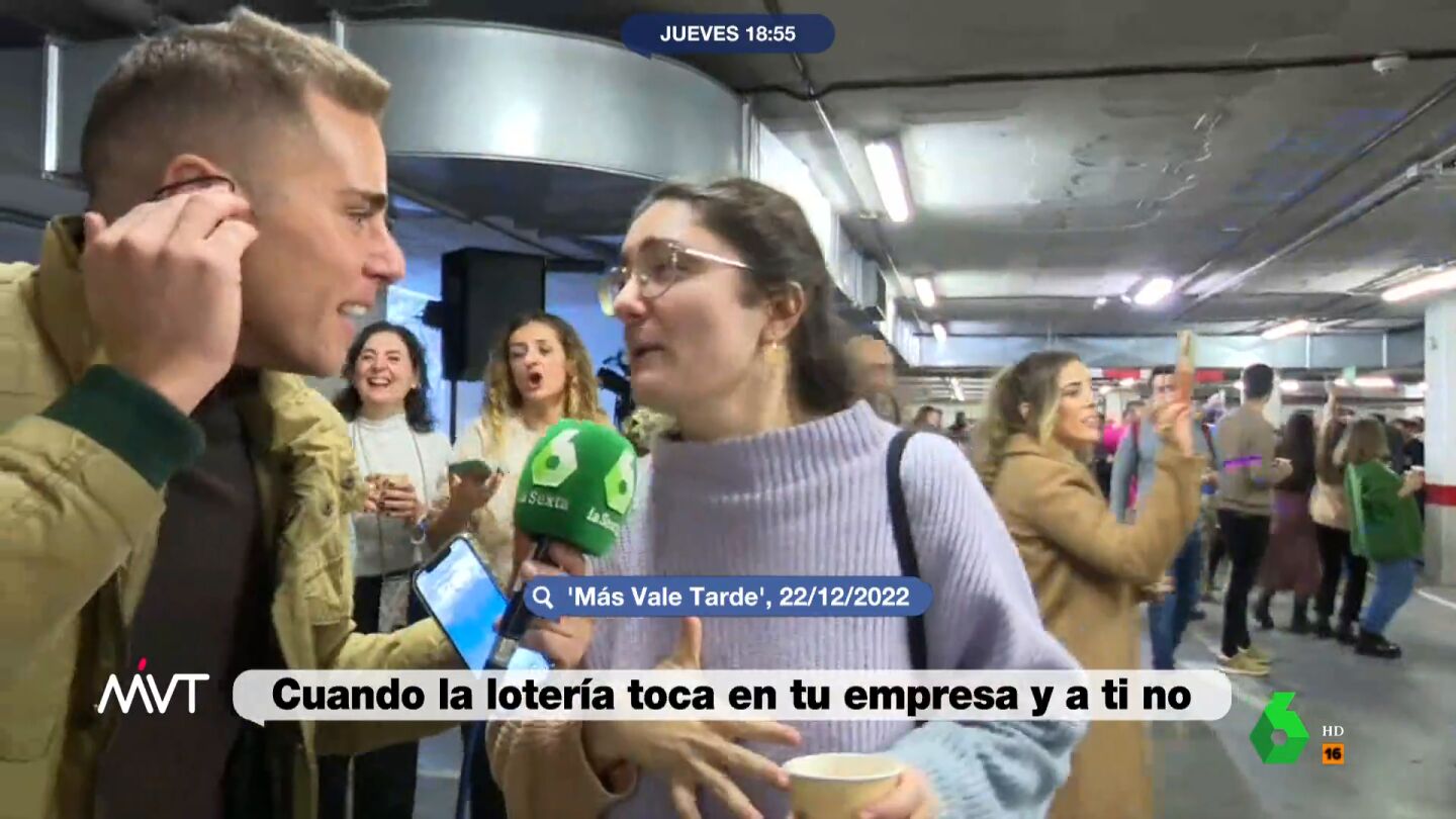 En el vídeo sobre estas líneas, el programa recuerda la entrevista que hizo un reportero de laSexta a la becaria de la empresa donde había caído el 'Gordo' de la Lotería de Navidad. En aquél lugar, donde se repartieron 70 millones de euros, la joven aseguraba no haber sido una de las afortunadas: "Soy becaria, mi niño, no he podido comprarla", explicaba la chica, que sin embargo le decía al reportero que "no pasa nada, soy muy joven y todavía hay mucho tiempo".