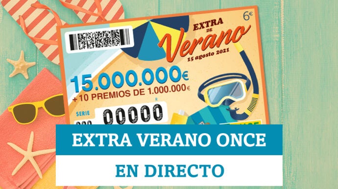 Juegos ONCE reparte hoy su Extra de Verano a partir de las 21:15 horas, con un primer premio de 15 millones de euros. Puedes seguir aquí el sorteo y toda la información sobre el Extra de Verano, minuto a minuto y en directo.