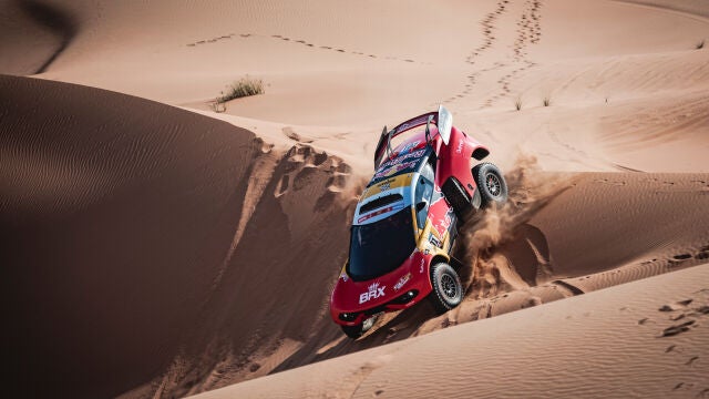 El Rally Dakar 2023 parece instalado durante los últimos días en un bucle. Ni siquiera la llegada al Empty Quarter para celebrar allí la primera parte de la etapa maratón ha sacado a la carrera de un guion que ya hemos visto en los últimos días, con victoria de Sébastien Loeb y Fabian Lurquin en coches, la cuarta consecutiva y quinta en total en esta edición, así como el baile de posiciones en motos que ha terminado de nuevo con las Husqvarna consiguiendo el triunfo parcial y llegando a la noche con uno de sus pilotos líder.