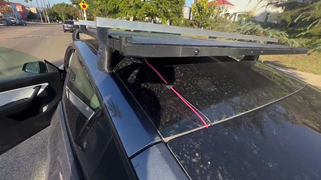 Colocar un panel solar expansible en el techo de un coche eléctrico permite obtener energía del sol y pasarla al vehículo a través de una batería externa incluida.