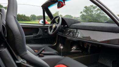 Rojo por fuera y negro por dentro, este F50 descapotable presentado en el 95, fabricado en el 96 y matriculado en el 97, dispone de llantas de 18 pulgadas en ambos ejes, neumáticos con hasta 335 mm de anchura, así como discos de freno perforados de alto rendimiento y unos amortiguadores adaptativos desarrollados ad-hoc. El hecho de que sirviese para celebrar el 50 aniversario de Ferrari y de que, adicionalmente, haya pertenecido a un icono de la música mundial, lo convierte en una joya única con la que se especulará.