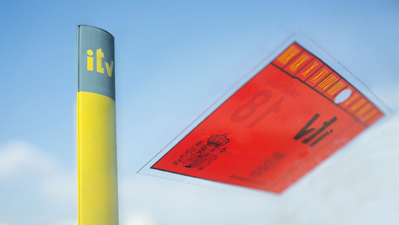 No es un adorno ni un capricho y todos los vehículos que circulan por España, todos, deben llevarla. Es la señal V19, o en palabras que todo entendamos: la pegatina de la ITV, esa que cuesta quitar, que te deja el parabrisas con restos de adhesivo y que tienes que renovar cada vez que superas la inspección. No llevarla son 100 euros.