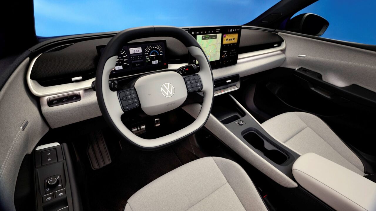 El nuevo enfoque de Volkswagen combina la modernidad y la practicidad. El interior, que su diseñador Andreas Mindt ha bautizado como “Pure Positive”, apuesta por los textiles cálidos en el salpicadero y las puertas, dejando atrás los plásticos fríos para mejorar la sensación de confort y darle al habitáculo un aire acogedor sin perder la tecnología que se espera de un eléctrico de última generación.
