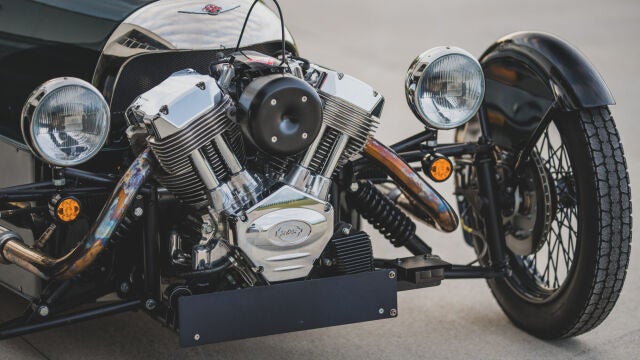 Tiene tres ruedas (dos delanteras y una trasera), lo que es su mayor rasgo diferencial e implica una dinámica de conducción que poco o nada tiene que ver con lo que estamos acostumbrados. Cuenta con una carrocería extremadamente estrecha y un motor bicilíndrico en V colocado al aire en la parte frontal, configurando una estética retro que gira cabezas allá por donde pasa. El propulsor era un V-twin de 1.982 centímetros cúbicos suministrado por S&S Cycle (un especialista estadounidense en motores de motocicleta) que entregaba alrededor de 82 CV.