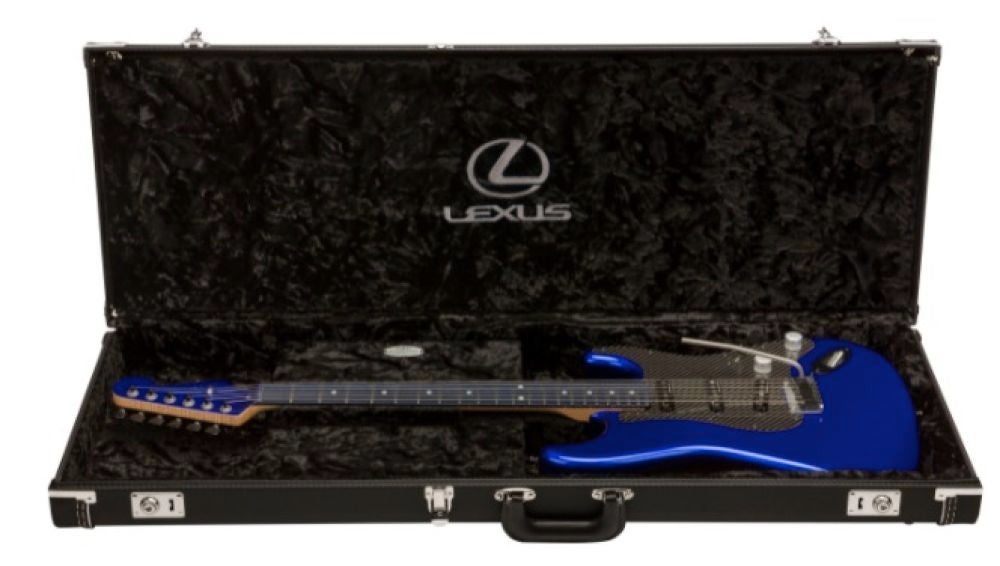 Por otra parte, el golpeador está sujeto mediante tornillos mecanizados con cabeza plana negra que recuerdan a un automóvil, mientras que las pastillas son las más recientes de bobinado simple silencioso de Fender, otra novedad de Fender Custom ShopTM. Para rematarlo, la cabeza presenta un acabado en azul estructural con el logotipo cromado de Fender, mientras que la funda personalizada que acompaña a la guitarra está revestida de vinilo texturizado con fibra de carbono, con letras negras y el logotipo de Lexus bordado en la parte interior de la tapa.