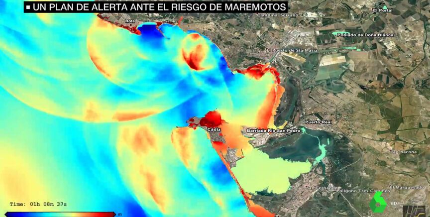 Si un maremoto llegara a la bahía de Cádiz, gran parte de la capital quedaría inundada. No es ciencia ficción, sino la simulación de un tsunami similar al que se vivió en 1755. Este maremoto llegó a magnitud 9 y arrasó Cádiz y Huelva. En total se registraron 1.240 muertos en una costa donde vivía muchísima menos gente que ahora. Fue el más grave, pero desde entonces se han registrado más de una docena.