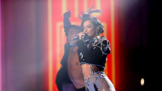 Una de las sorpresas de la noche ha sido Blanca Paloma, que con su 'Secreto de agua' ha emocionado con una actuación vocal muy potente y una original escenografía, con una tela blanca en el suelo sobre una proyección de agua que generaba un efecto similar a un nenúfar.
