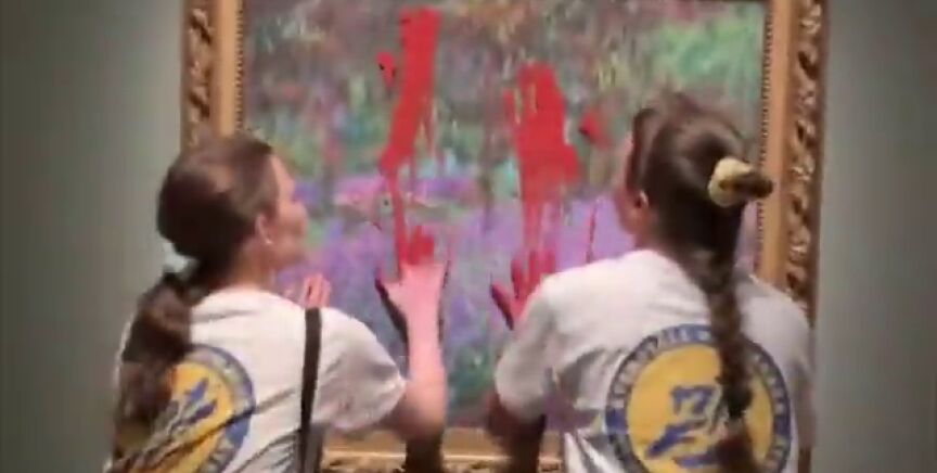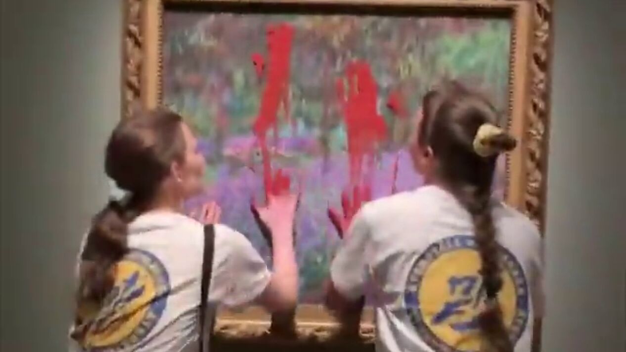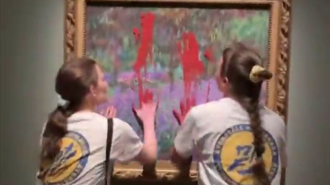 Dos activistas manchan de pintura roja un cuadro de Monet para protestar por la crisis climática en Suecia