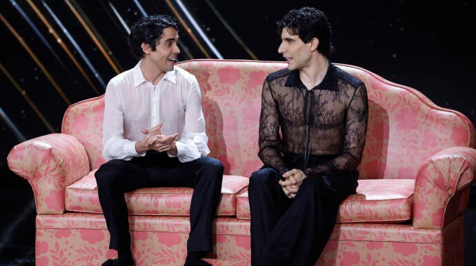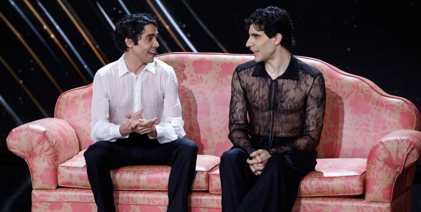 Javier Calvo y Javier Ambrossi han compartido varias anécdotas de su vida personal y profesional sobre el escenario de los premios Goya 2024. Lo han hecho de forma cómoda, sentados en un sofá, y con un inesperado 'cameo' sobre el escenario.