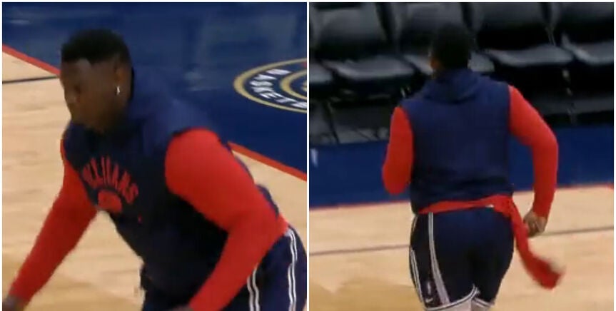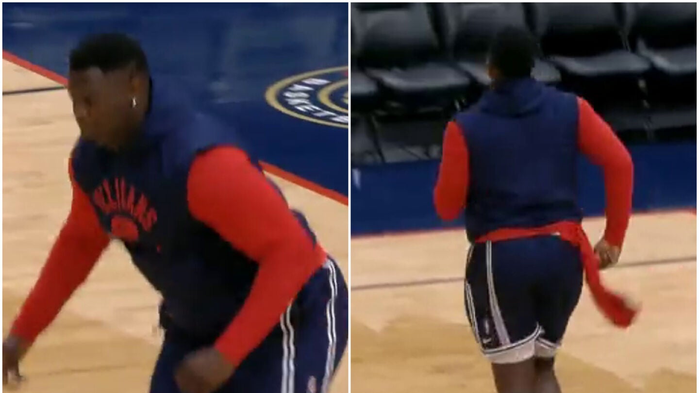 Zion Williamson ha reaparecido. Al menos, para calentar. La estrella de los New Orleans Pelicans estuvo calentando un poco en la cancha de su equipo en el partido que les enfrentó a los New York Knicks... y la breve secuencia está dando muchísimo de qué hablar en la NBA.