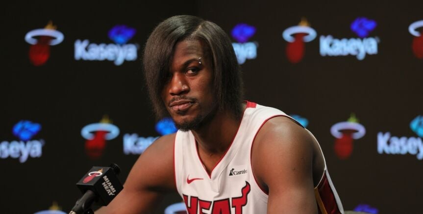 Lo ha vuelto a hacer: el sorprendente look de Jimmy Butler en el 'Media Day' de la NBA