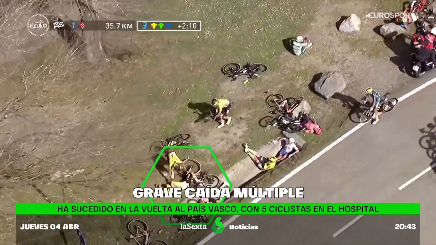 La cuarta etapa de la Vuelta al País Vasco ha dejado una caída escalofriante en la que los favoritos han sido los protagonistas. Jonas Vingegaard, Roglic y Evenepoel se fueron al suelo junto a otros diez ciclistas.