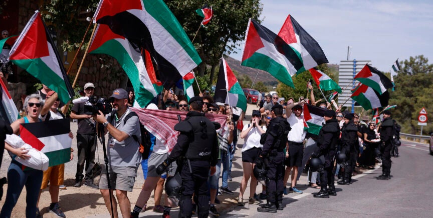 Asimismo, en la cercana Cercedilla ha habido otra concentración de manifestantes propalestinos -entre los que estaban la secretaria general de Podemos, Ione Belarra, y la eurodiputada de Podemos, Irene Montero- que ha obligado a la organización de La Vuelta ha hacer un pequeño recorte en su recorrido evitando el paso por esta localidad madrileña.