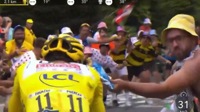 La lamentable agresión a Pogacar y Vingegaard en pleno ascenso al Tourmalet en el Tour de Francia 2024