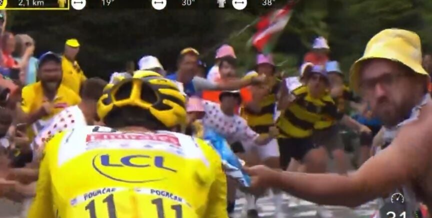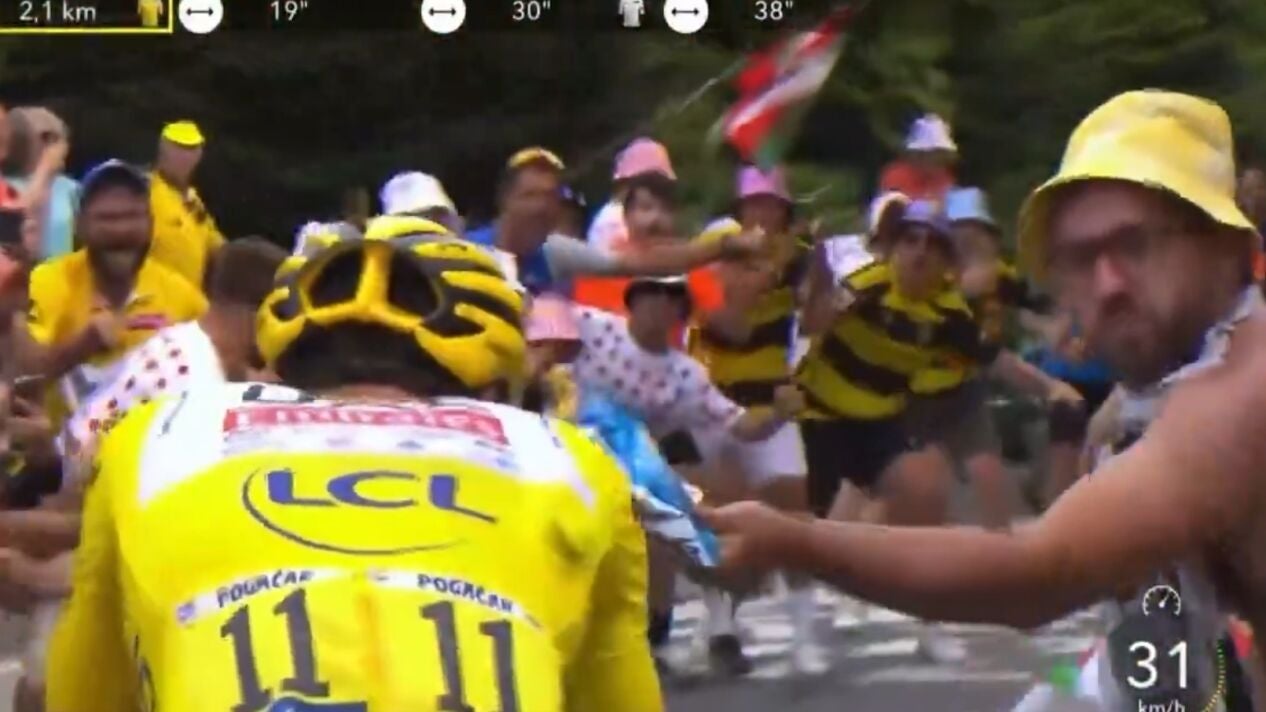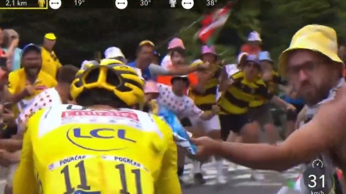 Doble agresión la que se ha vivido en una de las etapas más importantes del Tour de Francia. En la ronda 14, en la del ascenso al Tourmalet, un aficionado ha puesto en riesgo a Tadej Pogacar, ganador final de la jornada, y a Vingegaard con una acción que puso la nota negativa a un triunfo espectacular del corredor esloveno.