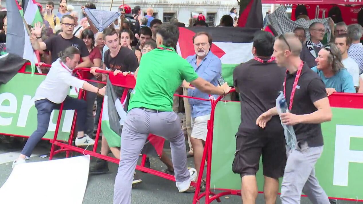 El momento en el que los manifestantes rompen las vallas del recorrido de La Vuelta en protesta por Palestina