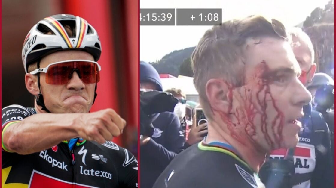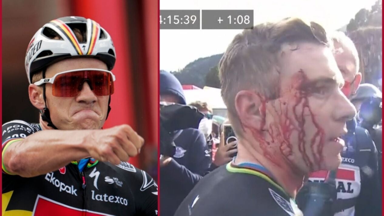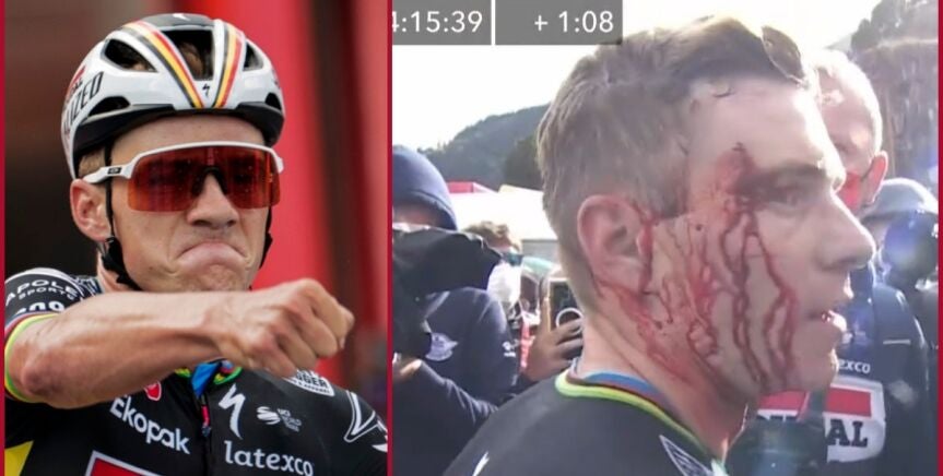 Remco Evenepoel acabó conquistando el maillot rojo tras la tercera etapa de La Vuelta. Sin embargo, también terminó con una enorme brecha en su ceja por un accidente con una auxiliar de la competición.