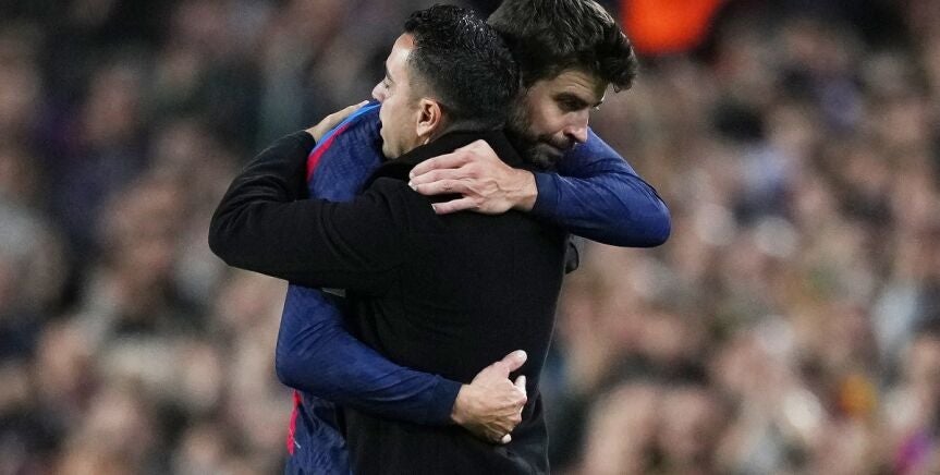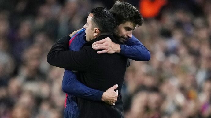 Gerard Piqué ha dicho adiós al Barça en el Camp Nou. El central fue titular ante el Almería para ser sustituido en el minuto 82, y para dejar una de las imágenes del partido en su abrazo con Xavi Hernández.
