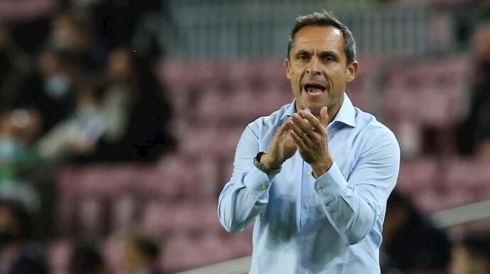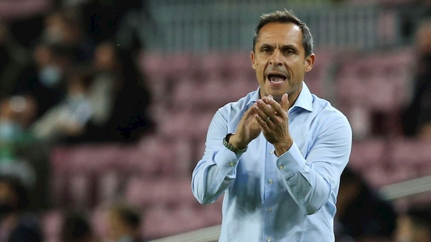 Sergi Barjuan, desde la banda, estuvo muy activo en los minutos finales cuando el equipo se volcó como pudo para buscar un segundo gol que no llegó porque tampoco llegaron demasiadas ocasiones claras.