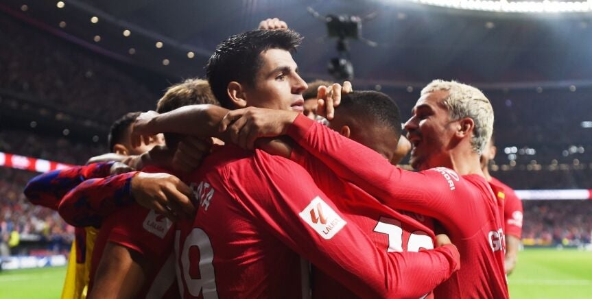 3' ¡Gooooooool del Atlético! ¡Gooooooool de Álvaro Morata! ¡Gran centro de Samuel Lino desde la izquierda y cabezazo preciso del delantero rojiblanco!