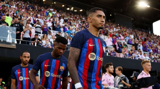 El nuevo FC Barcelona ya está en marcha. Y todavía a la espera de Robert Lewandowski, es Raphinha el fichaje que más ha brillado en el debut de pretemporada ante el Inter Miami: goleada por seis goles a cero.