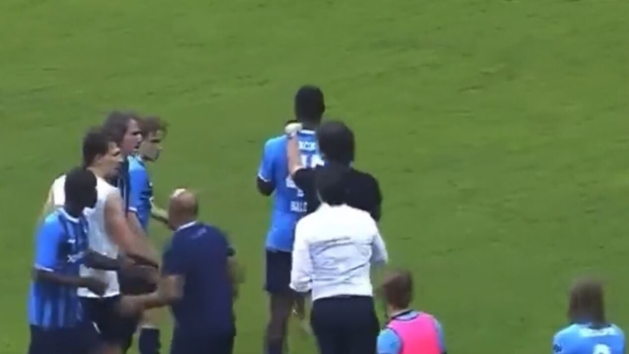 El entrenador se fue a por él bastante enfadado por un comentario que no se ha podido descifrar y tuvieron que ser separados ambos por sus compañeros para evitar una pelea.