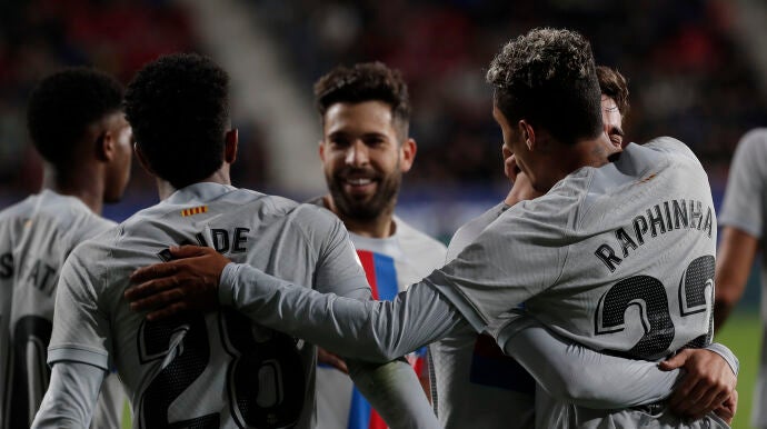 Ter Stegen se convirtió entonces en protagonista. Evitó que Osasuna se adelantara. La más clara, un centro que fue a portería de Ávila. Después, Kike García remató cerquita del palo. Las tenían los locales. Pagaba el Barça estar con uno menos. Todo cambió con la salida de Raphinha. Tiró el desmarque, le vio Frenkie de Jong y de cabeza superó por encima a Aitor Fernández. Los de Xavi acababan de remontar y confirmaban su liderato hasta finales de diciembre, cuando vuelva la competición después de Qatar.