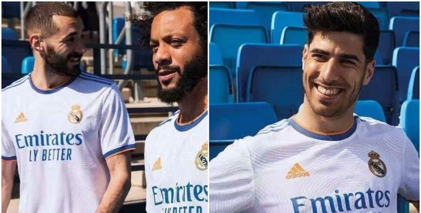 'Footy Headlines' ha publicado las imágenes de Benzema, Marcelo y Asensio luciendo la nueva camiseta del Real Madrid. Blanca, con detalles en azul y naranja