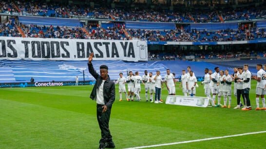 El Santiago Bernabéu ha desplegado todo su apoyo inequívoco a Vinicius tras los insultos racistas que recibió el jugador brasileño durante el partido contra el Valencia en Mestalla. El partido de los blancos contra el Rayo Vallecano ha estado marcado por numerosos gestos dirigidos a Vinicius en su semana más dura como futbolista del Real Madrid.
