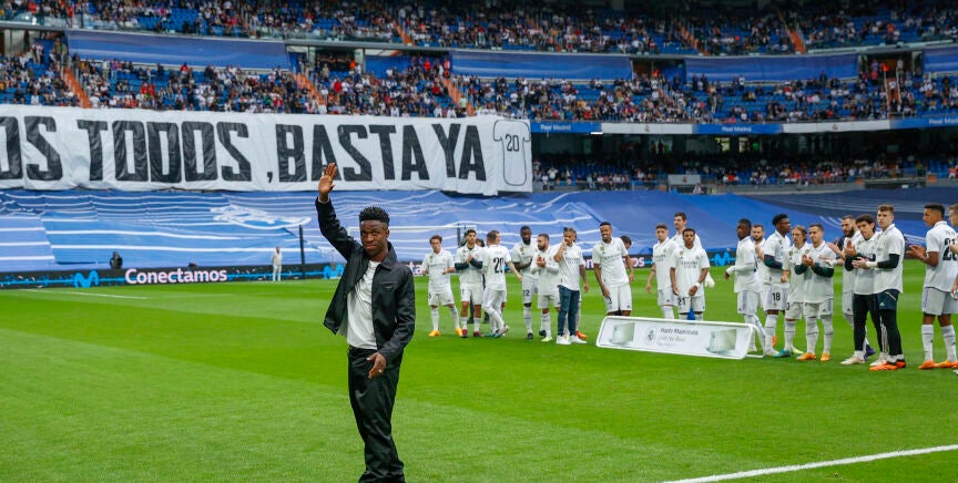 El jugador brasileño ha agradecido el apoyo mostrado por la afición madridista durante el partido contra el Rayo Vallecano. Con la pancarta 'Vinicius somos todos, basta ya', el Bernabéu ha arropado al jugador tras los insultos racistas que recibió en Mestalla.