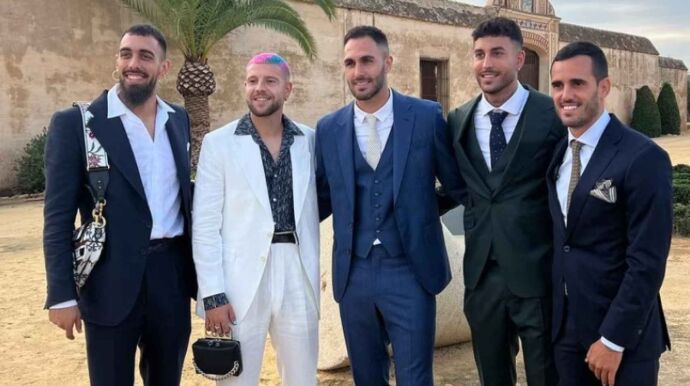 Ambos futbolistas del Real Betis recibieron insultos homófobos tras subir una fotografía a redes sociales en la que posaban, cada uno con un bolso, junto a Camarasa, Juanmi y Víctor Ruiz en una boda.
