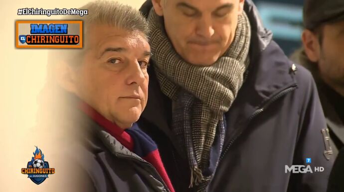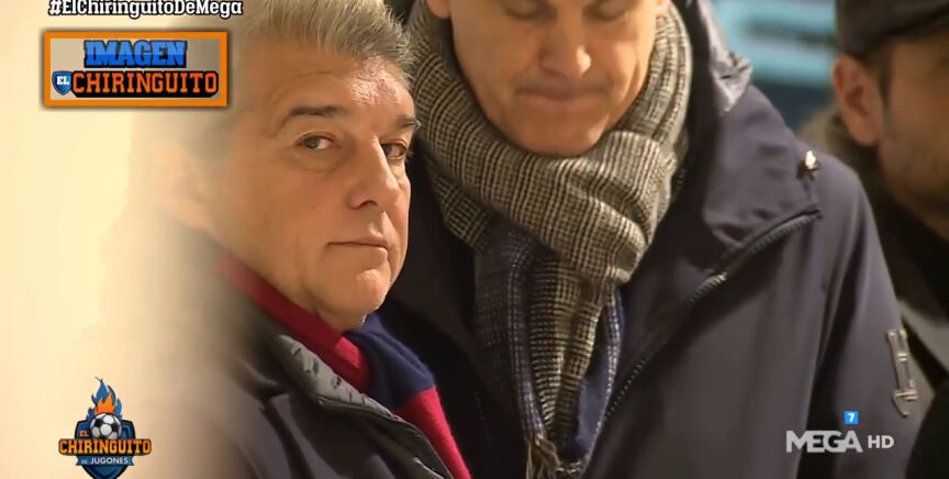 La cara de Joan Laporta en zona mixta lo decía todo. Tenso, enfadado, mirando fijamente a la cara de 'El Chiringuito'.