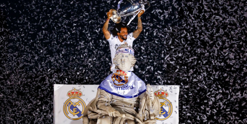 El brasileño Marcelo confirmó su final de ciclo con la conquista de la decimocuarta Copa de Europa con el Real Madrid, club del que es el jugador con más títulos de su historia y al que dice adiós "con mucha alegría" y agradecido "a los fans" y a "las noches mágicas" vividas en el Santiago Bernabéu. "Es un momento muy bonito. Cuando eres primer capitán sueñas con levantar la copa y me he convertido en el único brasileño que ha levantado una Champions como capitán del Real Madrid", afirmó en zona mixta "La emoción es brutal, ha sido mi último partido con el Real Madrid pero estoy muy contento. No es un día de tristeza, me voy con mucha alegría, agradecido a los fans y las noches mágicas que he vivido en el Bernabéu", añadió. (EFE)