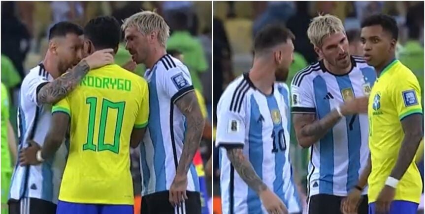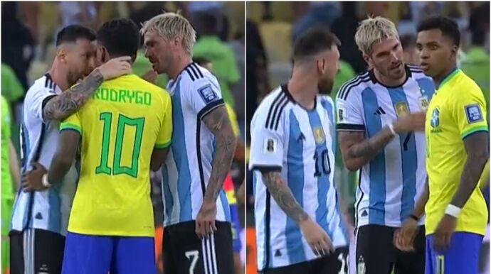 La colleja de Leo Messi a Rodrygo durante los disturbios previos al Brasil - Argentina