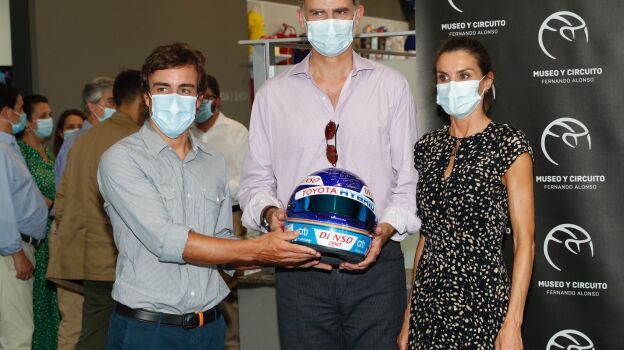 Entre la lista de obsequios a la familia real destacan dos cascos de Fernando Alonso. Uno de ellos fue entregado por el propio piloto a los Reyes cuando visitaron el museo y el circuito del piloto asturiano el pasado 30 de julio.