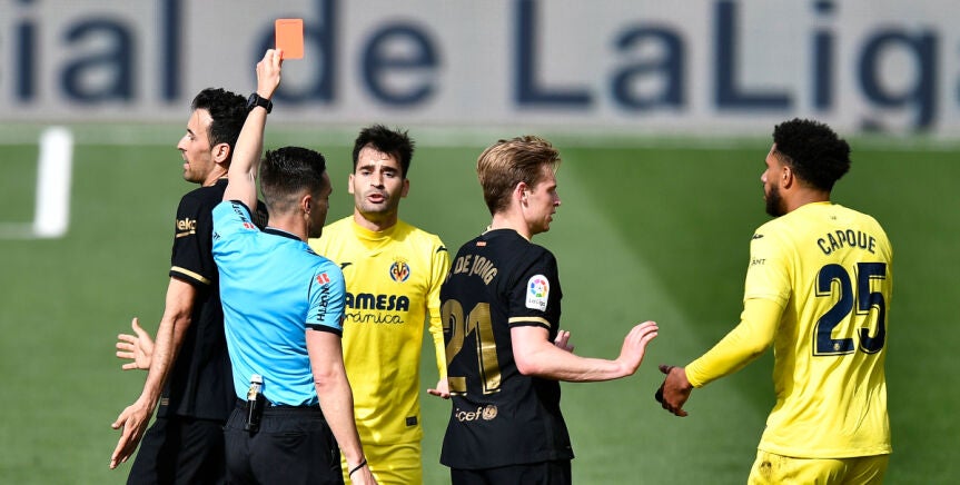 Del Cerro Grande, árbitro del partido, ni lo dudó. Sin necesidad de ser llamado por el VAR, mostró la tarjeta roja directa a Manu Trigueros.