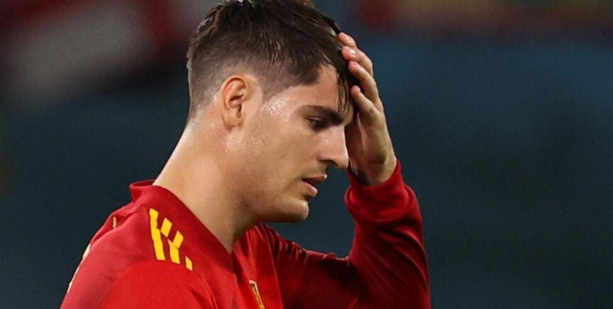 Y casi después, penalti para España. Penalti y doble fallo. Primero, de Gerard Moreno, que mandó al poste su lanzamiento. Y luego, Morata. Álvaro fue el más rápido pero pecó de precipitación. Sin portero, disparó completamente fuera.