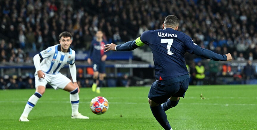 El PSG tumba a la Real Sociedad en el Reale Arena y se clasifica para los cuartos de final de la Champions League: 1-2 con doblete de Mbappé.