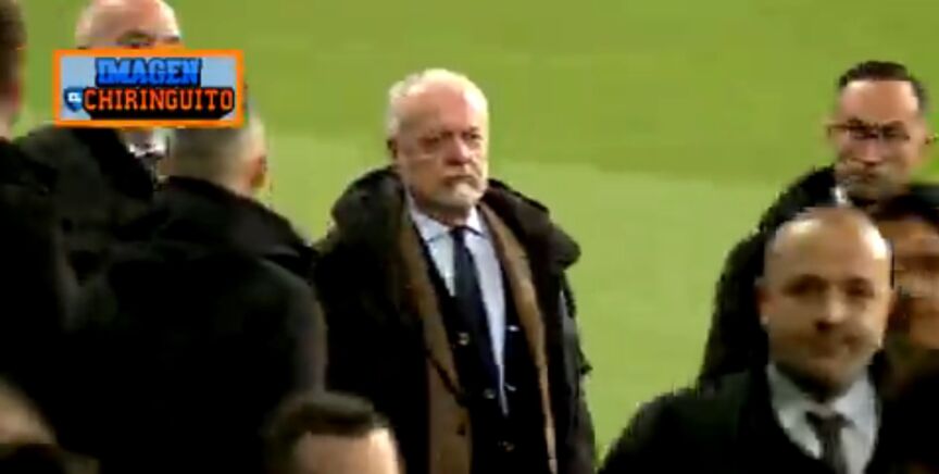 Inaudito: el presidente del Nápoles se lleva a un jugador en plena entrevista y agrede al cámara