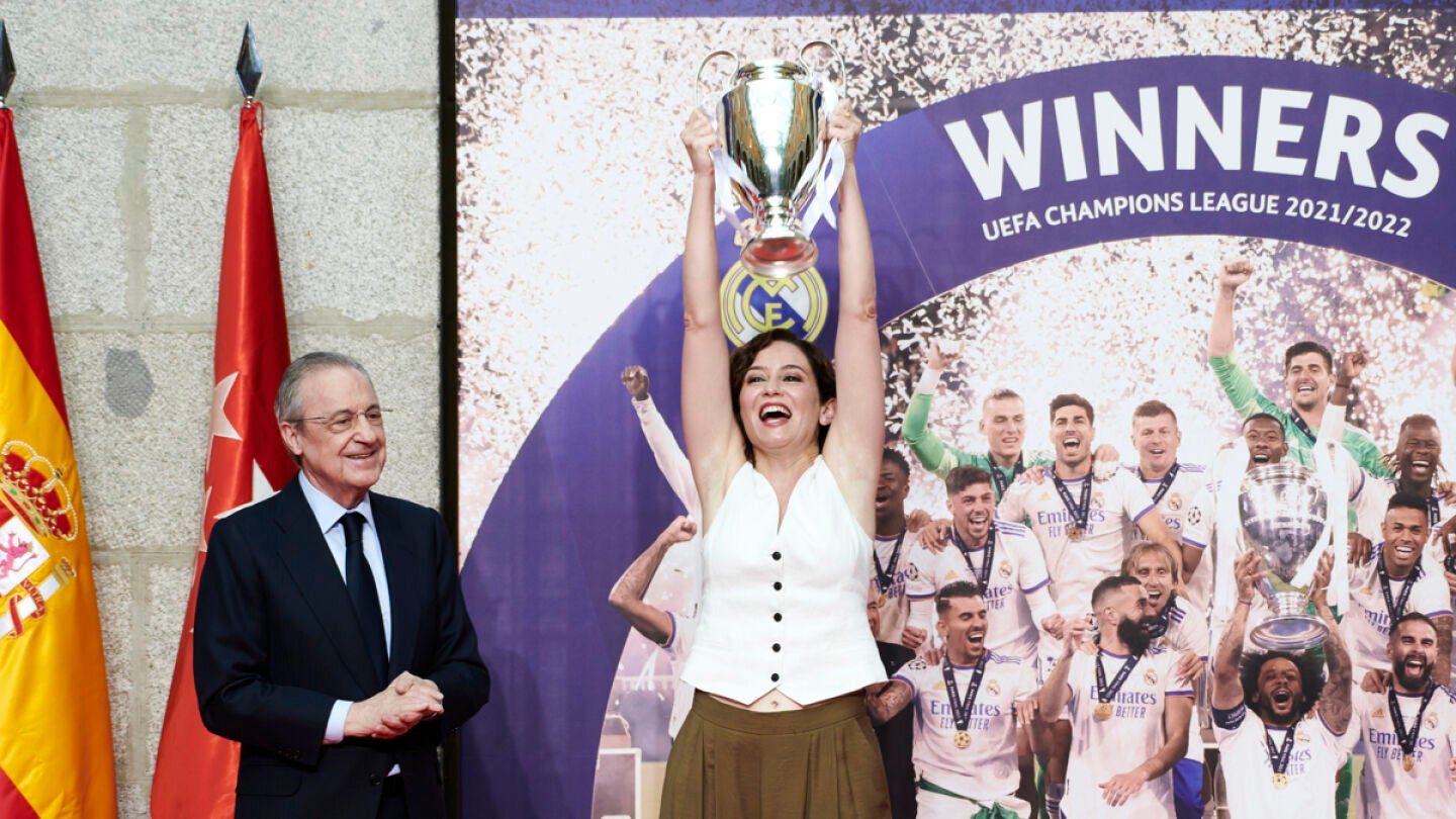 Porque Ayuso recibió una réplica de la Champions League, y la forma en la que la levantó al cielo de la capital no ha tardado en hacerse viral en las redes sociales.
